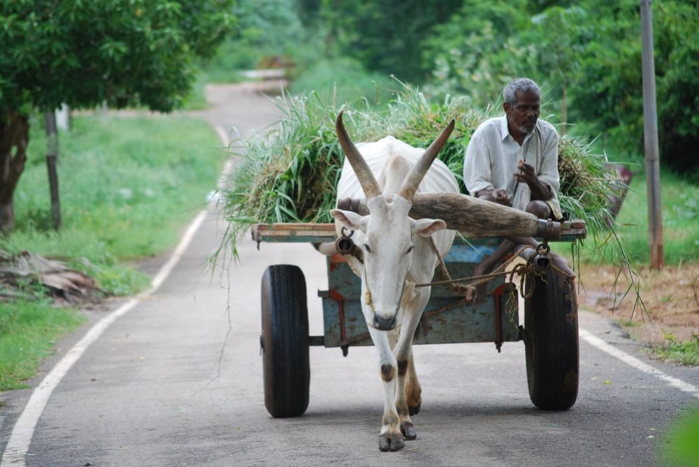 Cross Stitch | Ox - Man In Blue Dress Shirt Riding On White Cow On Road During Daytime