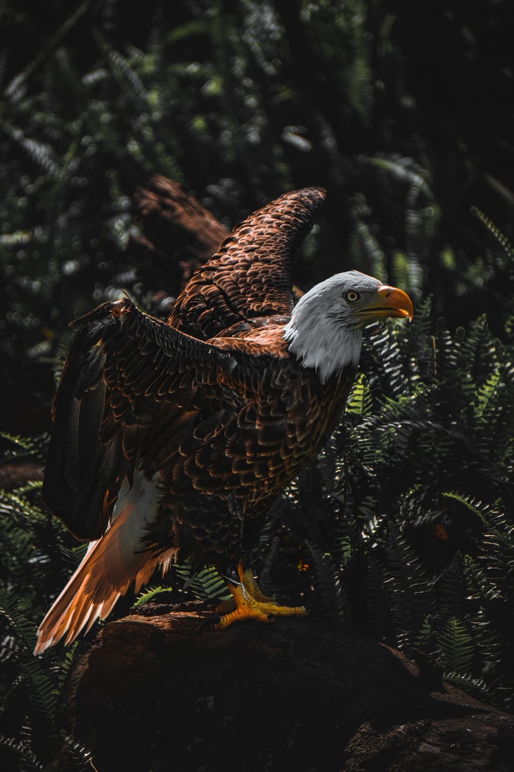 Point de croix | Pygargue à tête blanche – Aigle brun et blanc sur une branche d'arbre pendant la journée