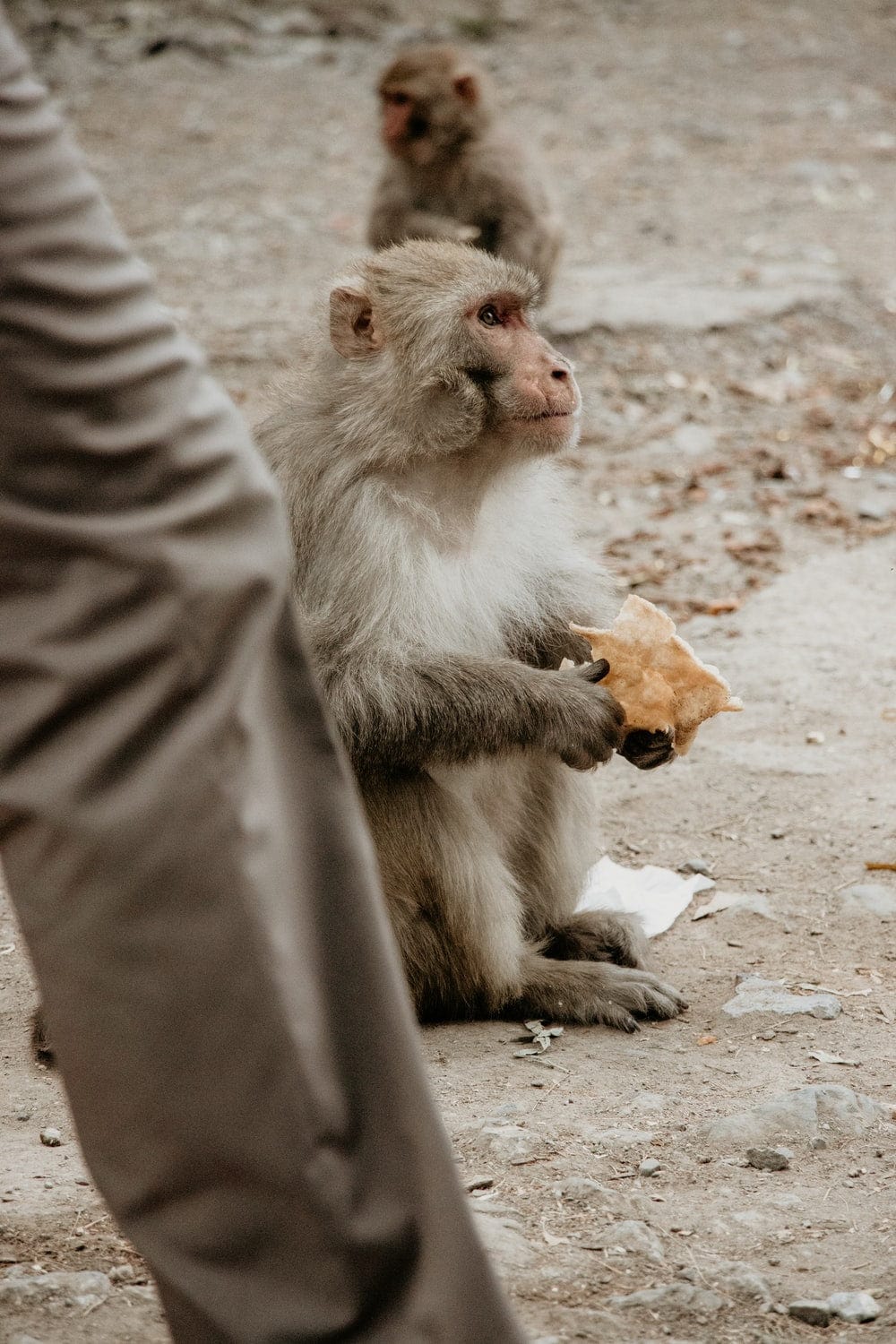 Point de croix | Armadillo - Deux singes assis par terre tenant de la nourriture