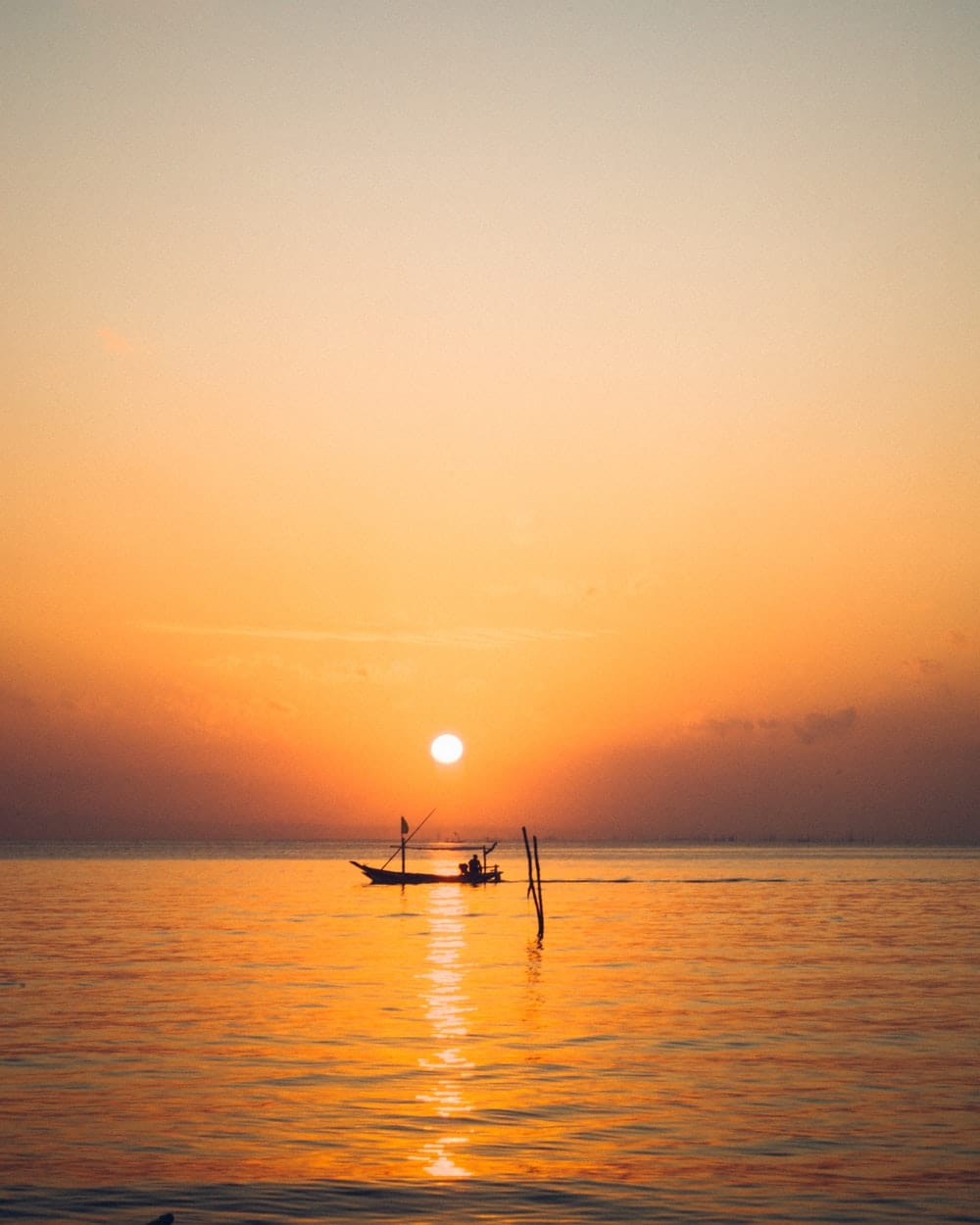 Cross Stitch | Surabaya - Silhouette Of Boat On Sea During Sunset